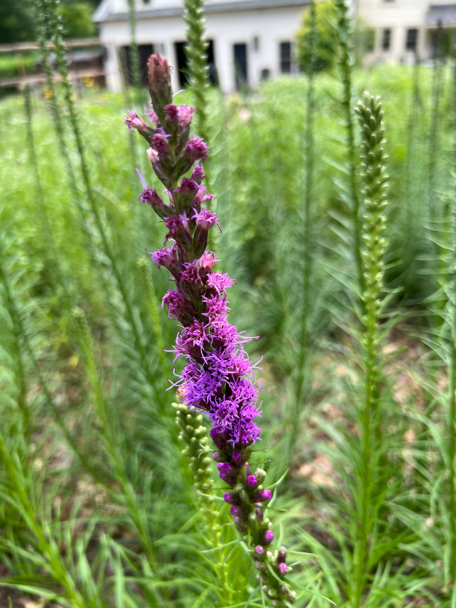 In the intervening few weeks, the blazing star (Liatris spp.) and Culver’s root (Veronicastrum spp.) grew several feet taller and came into bloom: