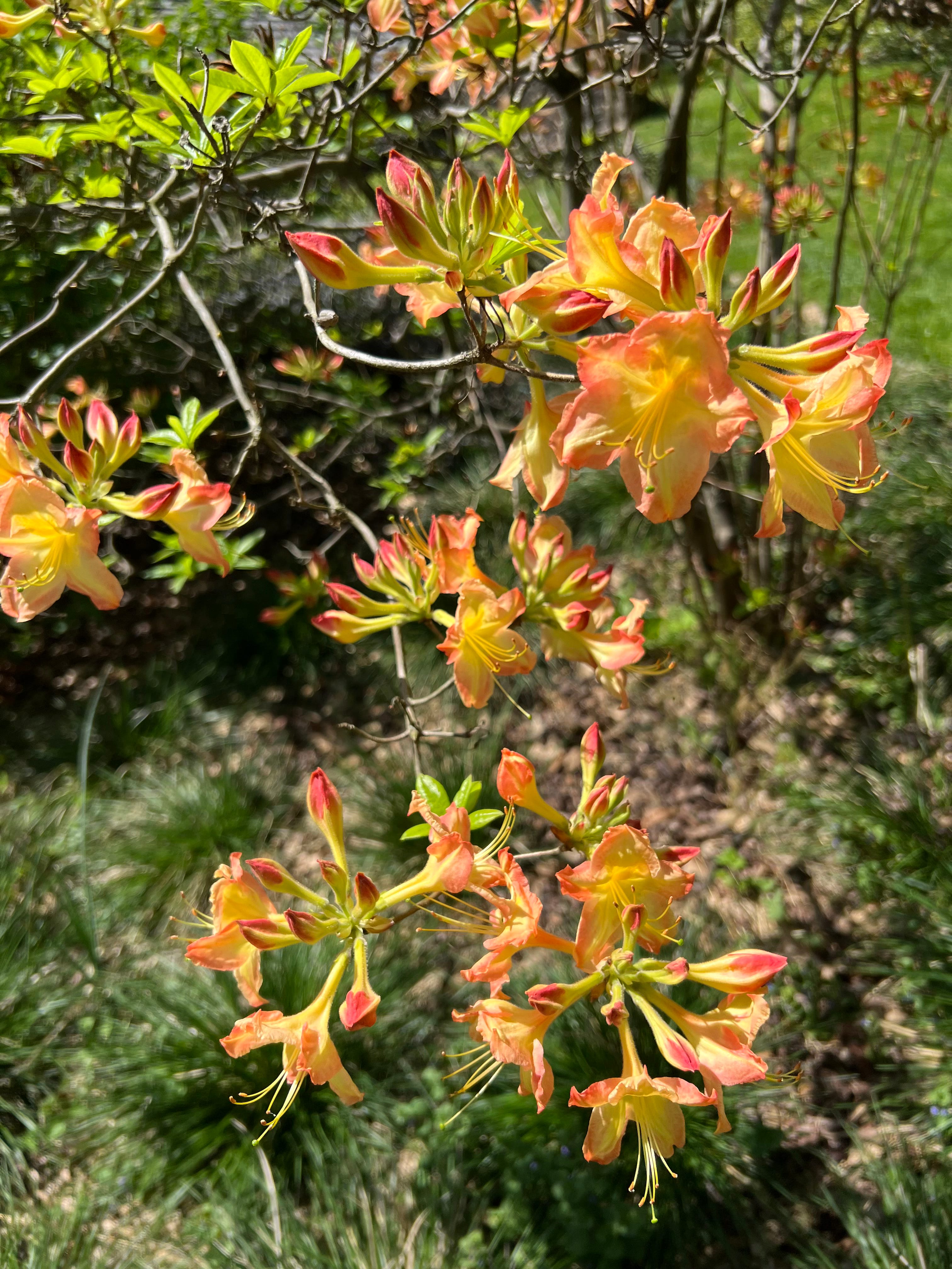 The old native azalea (Rhododendron spp.) by the barn has started its show: