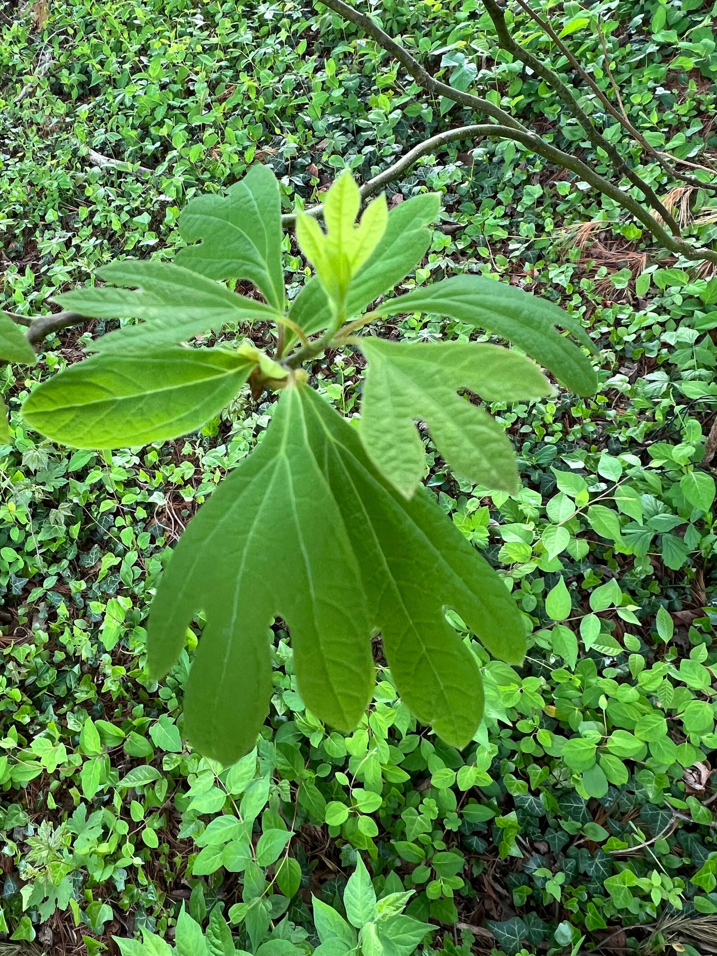 It may be hard to believe, but both of these pictures feature native sassafras (Sassafras albidum) leaves: